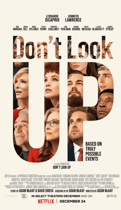 I was on the phone yesterday with my oldest. me and the boy talked about a movie that we had both watched on Netflix. The movie was don’t Look Up, it’s a dark comedy starring, Leonardo DiCaprio, Jennifer Lawrence, Meryl Strep, and Jonah Hill. In Don’t look up astronomers discover that an asteroid that is known as a planet killer is headed towards earth. The astronomers alert the president and dark comedy ensues. Yes the movie is very western centric in that the whole world is viewed through the lenses of someone who lives in the United States however, it is still funny and a little (emphasis on little) thought provoking. The movie was written and directed by Adam McKay and according to my oldest it was inspired by the climate change crisis we are all currently living in.